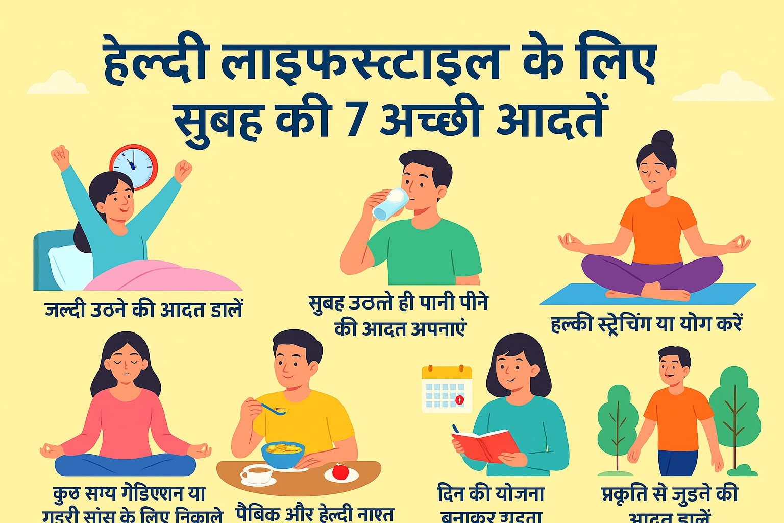 आज की तेज़ रफ्तार ज़िंदगी में हर कोई स्वस्थ और फिट रहना चाहता है, लेकिन सही लाइफस्टाइल की शुरुआत अक्सर छोटी-छोटी आदतों से होती है। खासकर सुबह का समय हमारी सेहत, सोच और पूरे दिन की एनर्जी को तय करता है। अगर आप अपनी सुबह की दिनचर्या को सुधार लेते हैं, तो आपकी पूरी लाइफस्टाइल हेल्दी बन सकती है। इस ब्लॉग में हम जानेंगे ऐसी 7 अच्छी आदतों के बारे में, जो आपकी सुबह को बेहतर बनाकर आपको एक हेल्दी और एक्टिव लाइफस्टाइल की ओर ले जाएंगी।